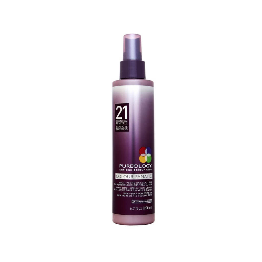 Leave In Conditioner Pureology. This treatment primes, detangles, and adds shine from root to tip. Pureology Color Fanatic Multi-Tasking Leave-In Conditioner is a leave-in treatment that primes, detangles, preserves color vibrancy, protects from heat damage up to 450° F, and adds shine from root to tip.